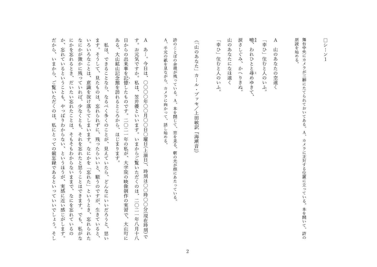 フラヌール第2回本公演『山のあなたに』の脚本データです。