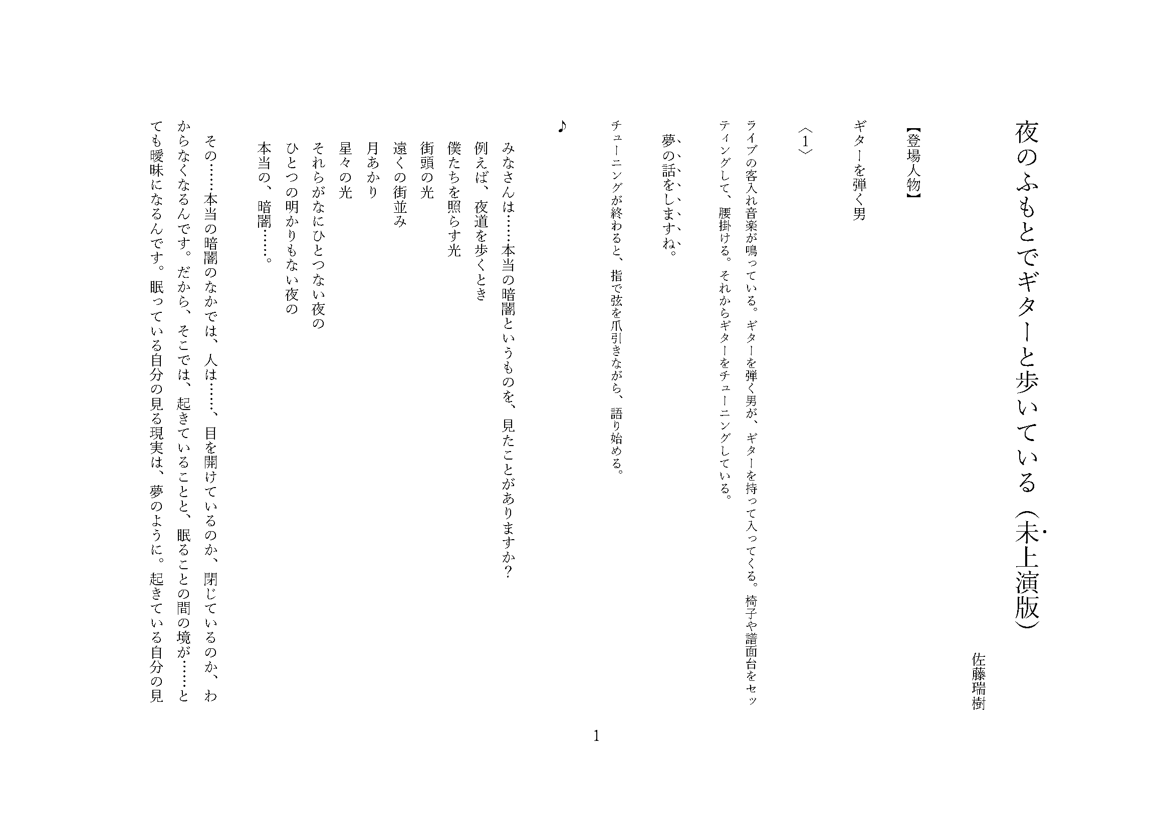 「夜のふもとでギターと歩いている」の脚本データです。