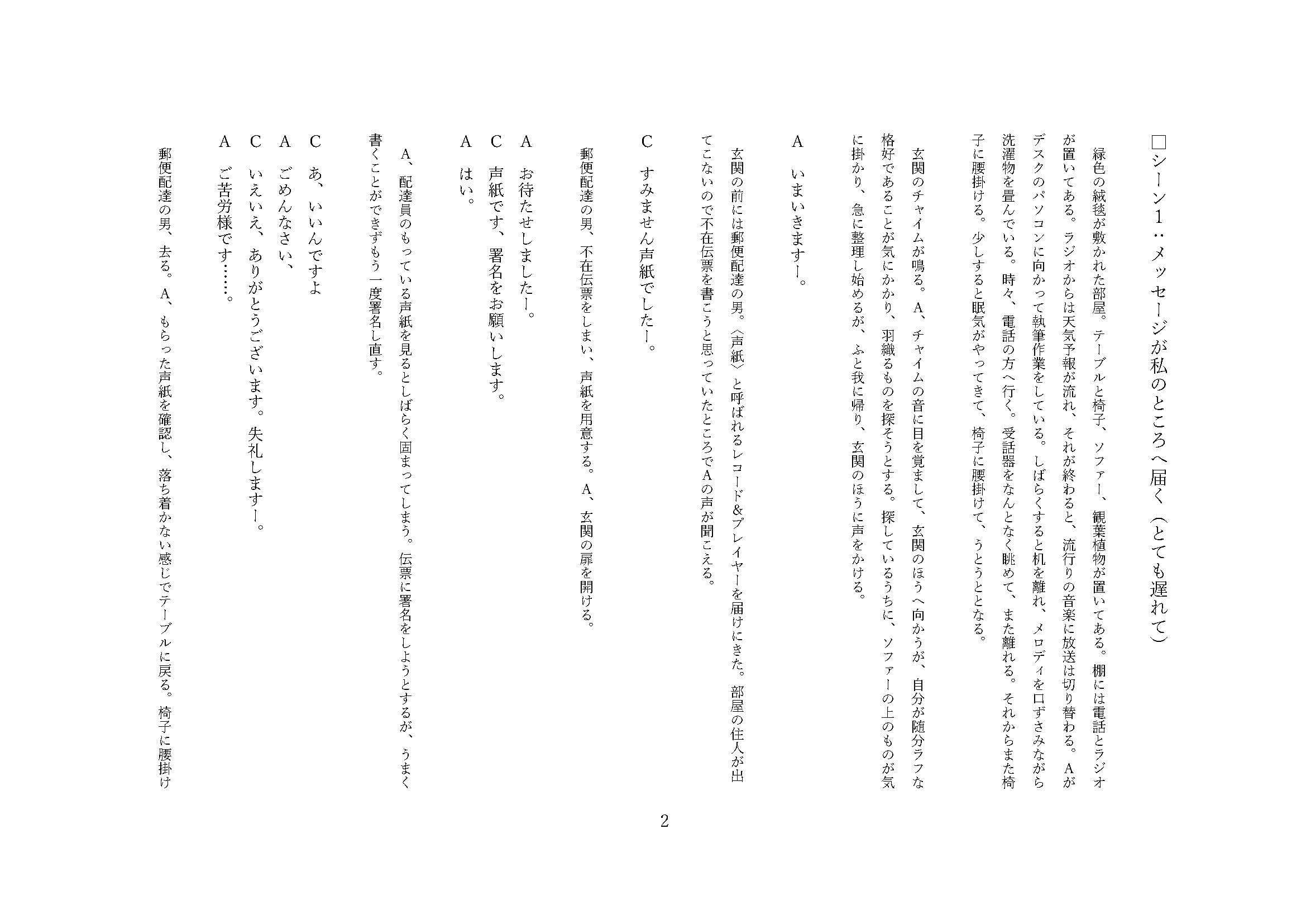 「たった一つの、私のためだけの言葉」の上演台本データです。
